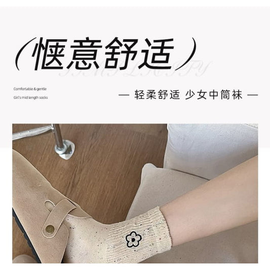 Melange-Kurzsocken-Set mit Blumenstickerei