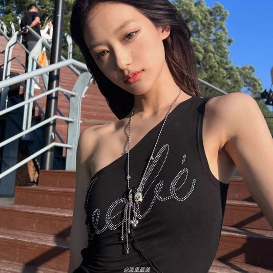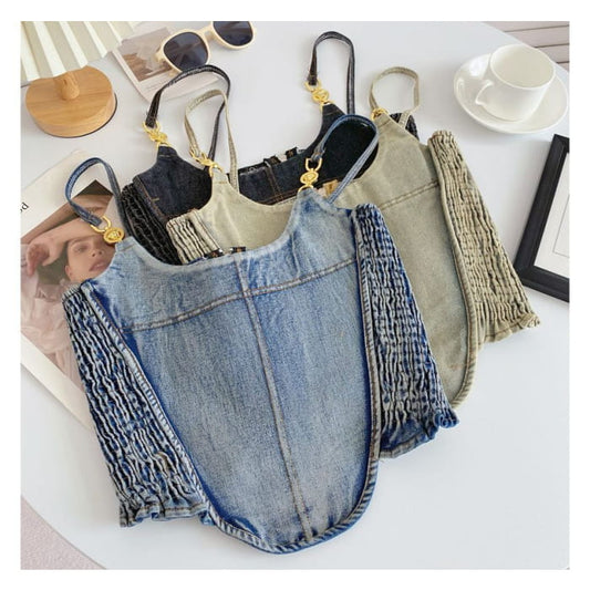 Kurzes Camisole-Top aus Denim mit Fransen