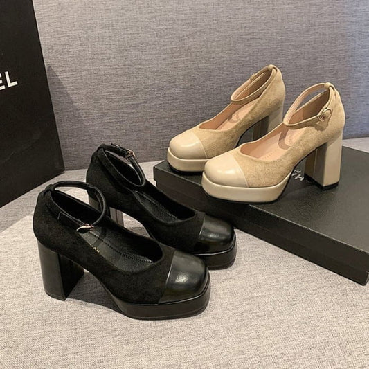 Mary Jane Pumps mit hohem Absatz und Plateausohle und Fesselriemchen