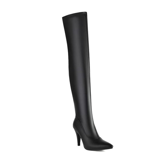 Hohe Stiefel mit hohem Absatz und spitzer Spitze