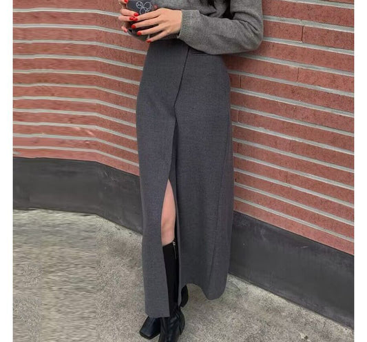 High Rise Plain Asymmetrical Slit Maxi Pencil Skirt
