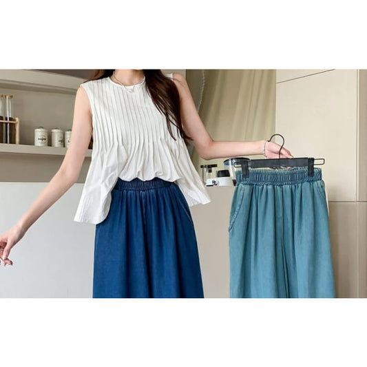 High Rise Mock Two Piece Plaid Panel Loose-Fit Wide-Leg Pants