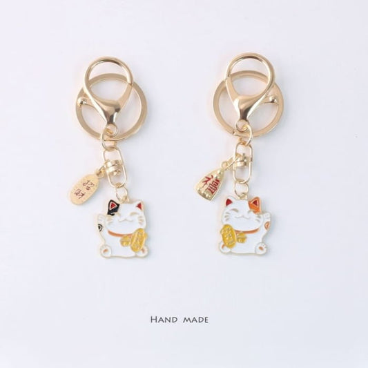 Japanischer Glückskatze-Schlüsselring / Taschenanhänger