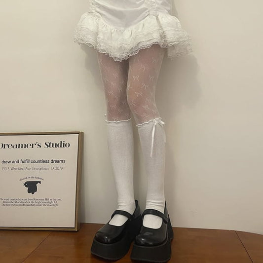 Strumpfhose mit Spitzeneinsatz und Schleifen-Akzent