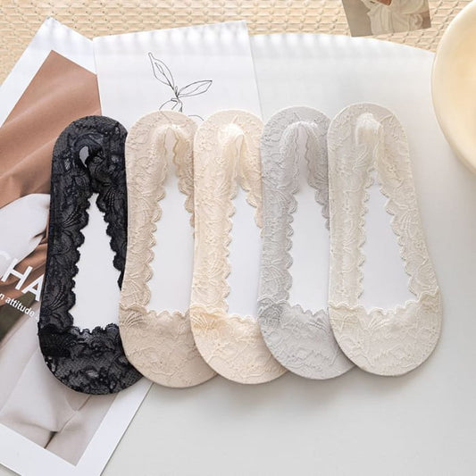Schlichte Socken mit Spitzeneinsatz und Bindeband vorne
