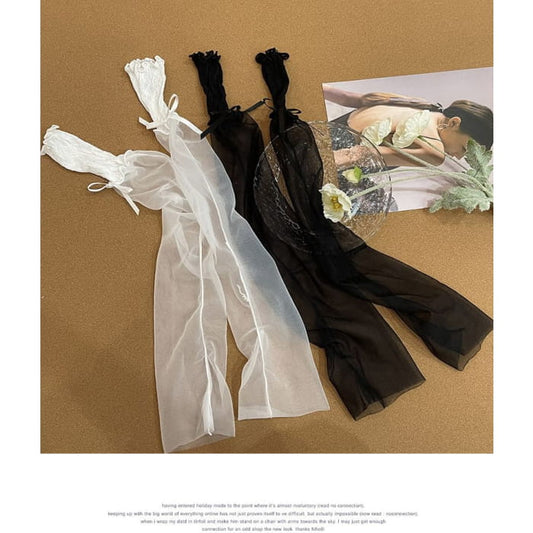 Lace One Long Shoulder Trim Blouse Plain Panel Sleeve