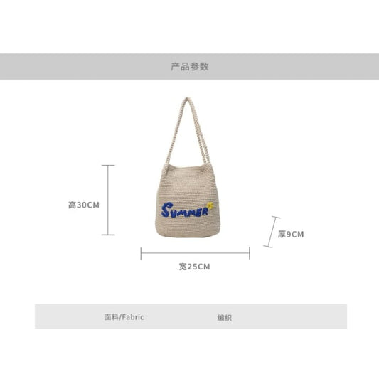 Gewebte Beuteltasche mit Schriftzug-Stickerei