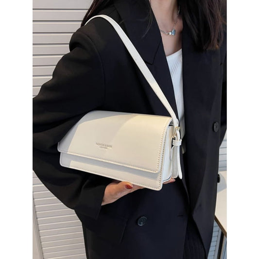 Schultertasche aus Kunstleder mit Überschlag und Schriftzug