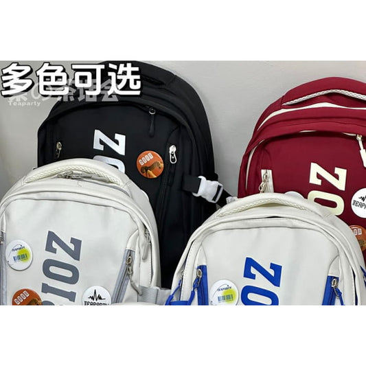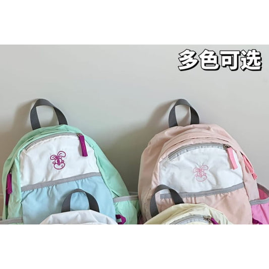 Laptop-Rucksack aus Nylon mit Schriftzug-Print und Cartoon-Stickerei / Taschenanhänger / Set