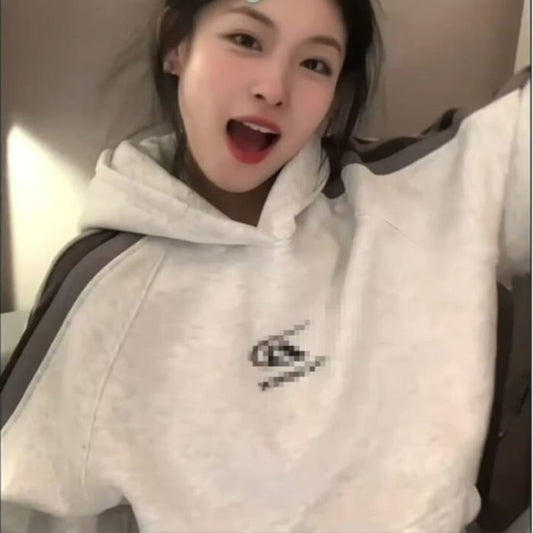 Locker sitzender Hoodie mit Streifen-Panel und Schriftzug