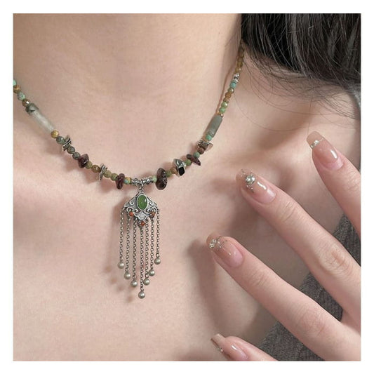 Choker aus Legierung mit Schlossanhänger und Fransen