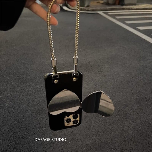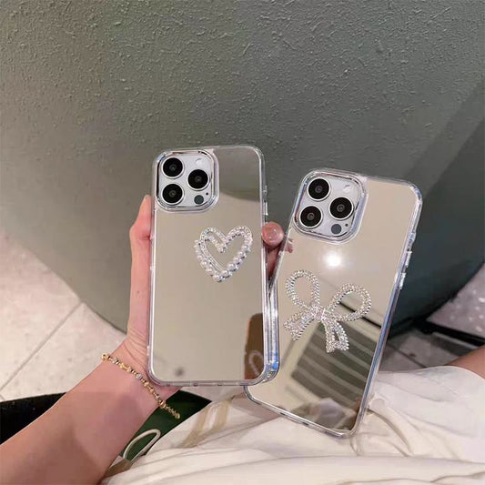 Mirrored Strap Pearl Heart Case Phone Faux / Set