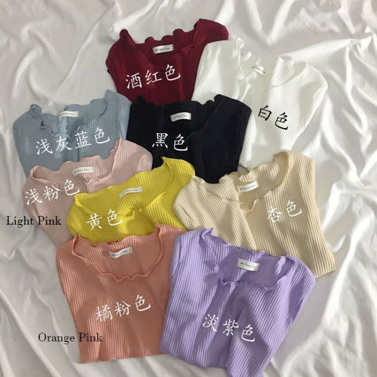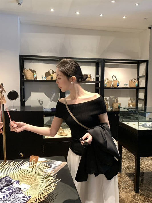 Ribbed Shoulder Short-Sleeve Knit Off Plain Top