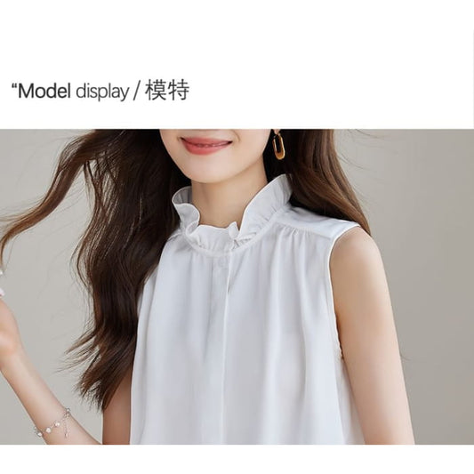 Ärmellose Bluse mit Rüschenkragen und Uni