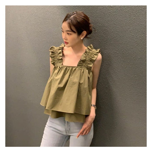 Fließendes Camisole-Top mit Rüschenbesatz