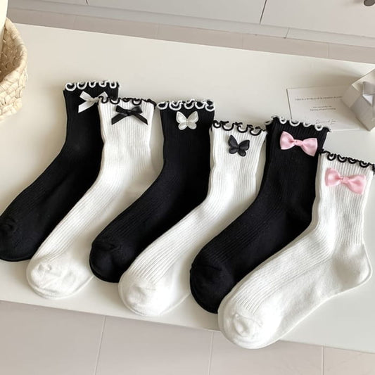 Ruffle Trim Bow Crew Socks