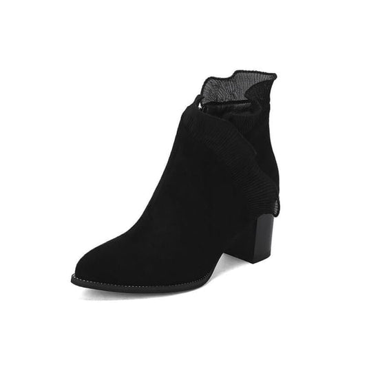Stiefeletten mit Rüschenbesatz und klobigem Absatz