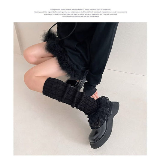 Beinwärmer aus Rippstrick mit Rüschenbesatz