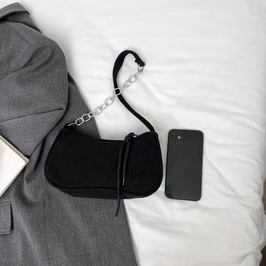 Chain Strap Corduroy Shoulder Bag