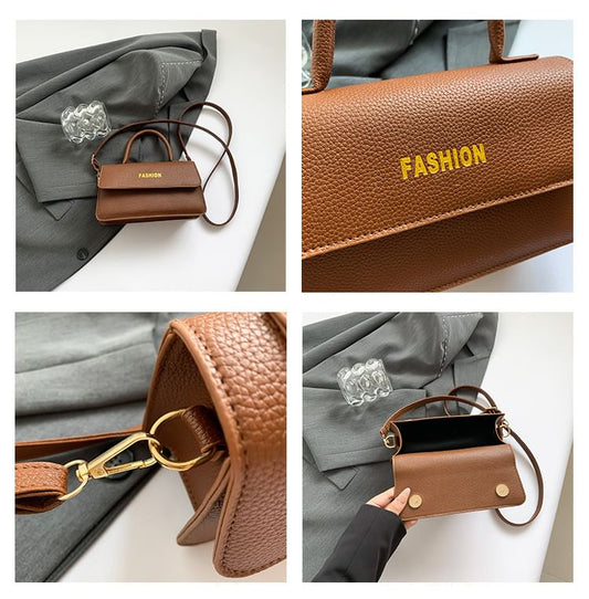 Set: Plaid Shoulder Bag + Plain Faux Leather Pouch