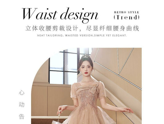 Elbow-Sleeve A-Line Evening Gown / Cocktail Dress