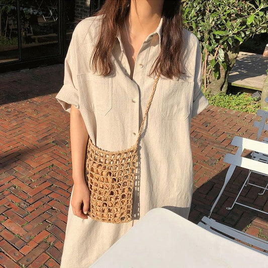 Plain Short-Sleeve Loose-Fit Shirtdress