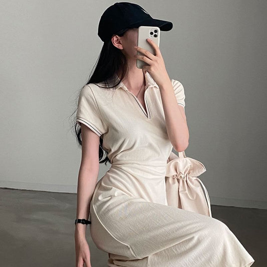 Short-Sleeve Contrast Stitching Polo Dress