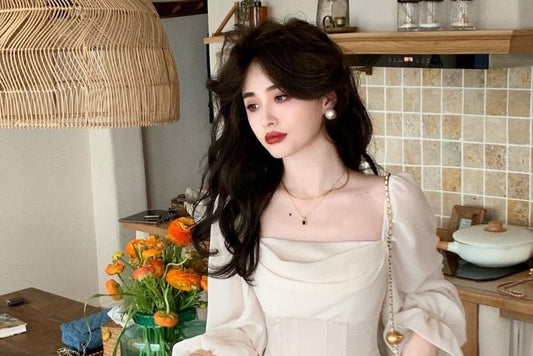 Long-Sleeve Square Neck Plain Button Tweed Mini A-Line Dress