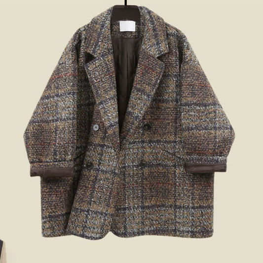 Schickes Blazer-Mantel-Midikleid mit Karomuster und Kapuze