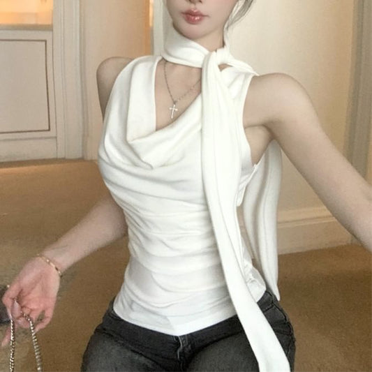Set: Top Slim Scarf Tank + Neck Cowl Plain Fit