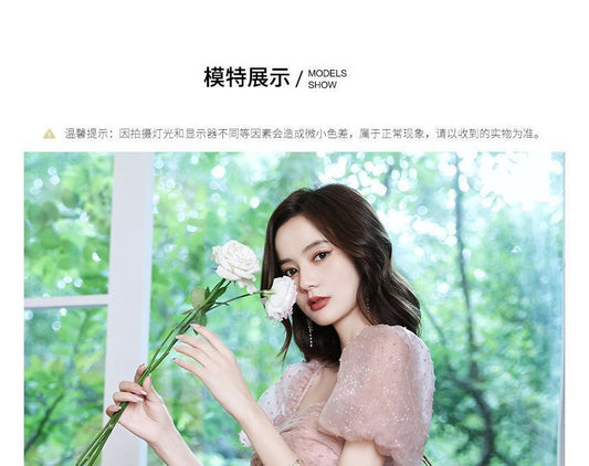 Puff-Sleeve Dotted Dress A-Line Prom
