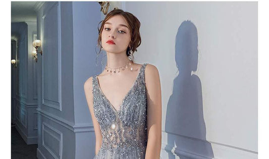 Gown A-Line Glitter V-Neck Evening