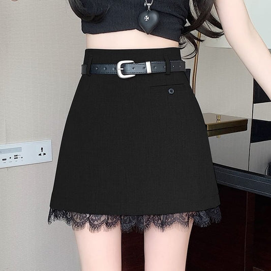 Trim Mini Rise A-Line Lace Plain Skirt High
