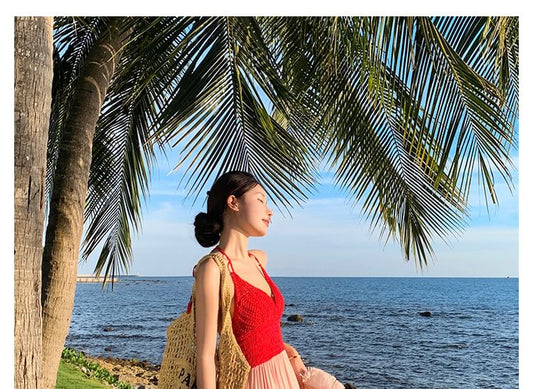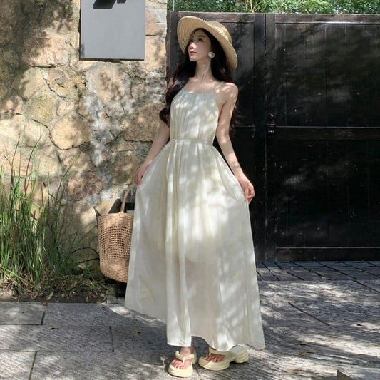 Halter Strappy Sundress Plain Maxi