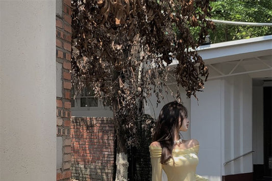 Tee Waist Maxi A-Line Set: High Off-Shoulder + Plain Fit Long-Sleeve Crop Slim Skirt