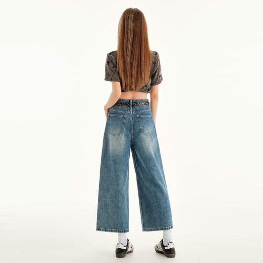 Wide Rise Cropped Trim Frill High Plain Pants Panel Leg Lace