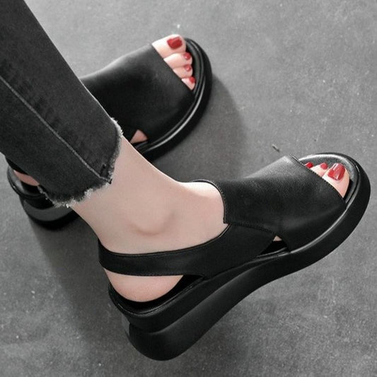 Leather Faux Sandals Slingback Plain Heel Wedge