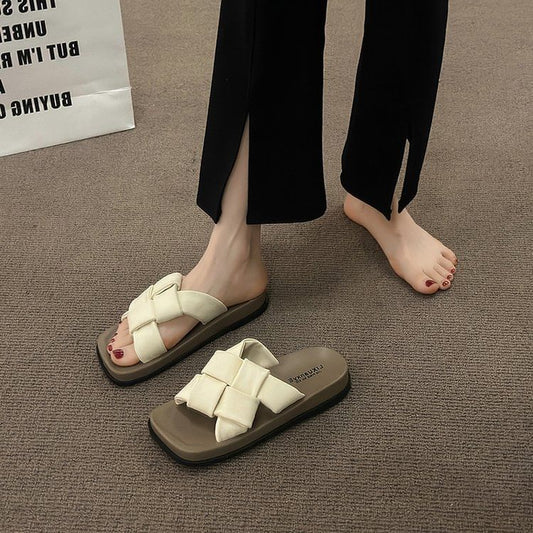 Sandals Faux Woven Leather Platform Square Toe