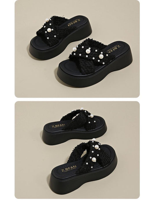 Platform Pearl Sandals Cross Slide Criss Faux
