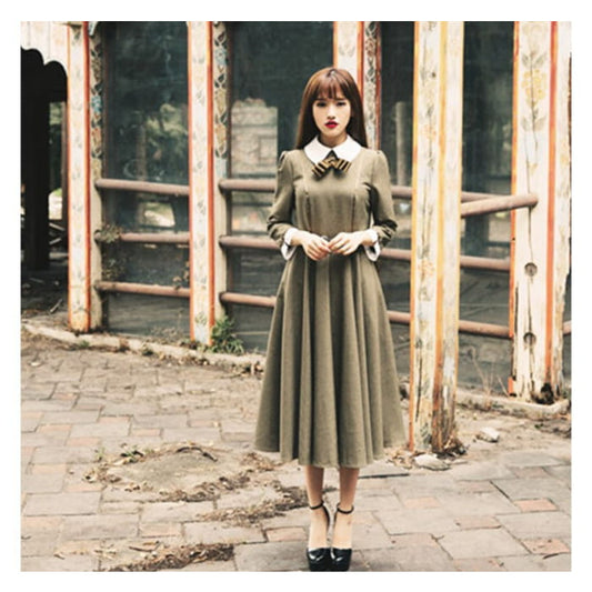 Langärmliges Midikleid in A-Linie mit Kontrastkragen