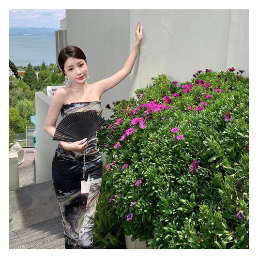 Bedrucktes, figurbetontes Midi-Schlauchkleid
