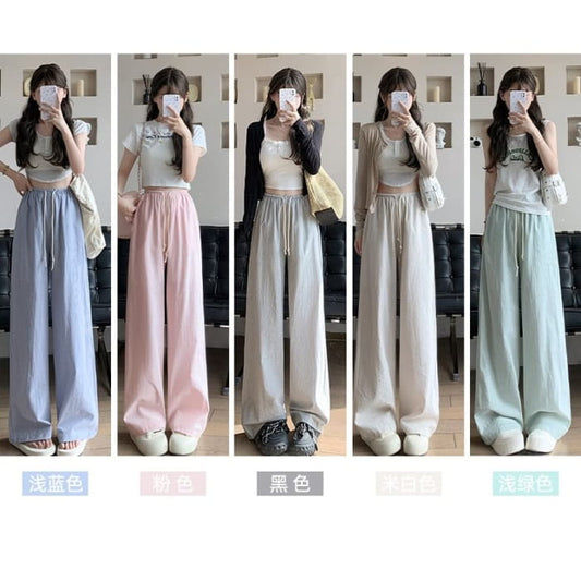 High Rise Jogginghose mit weitem Bein, Kordelzug und Streifen