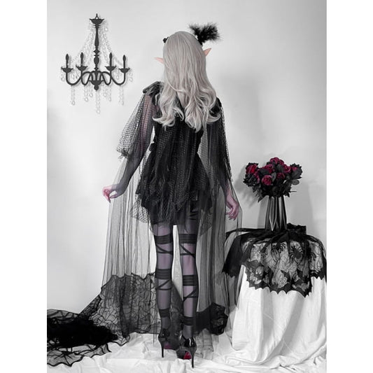 Halloween Schwarzes dunkles Gothic-Kleid mit Spitzenkostüm