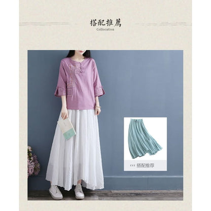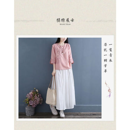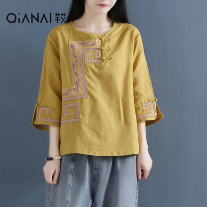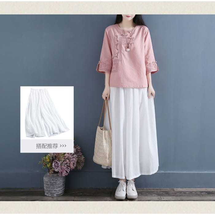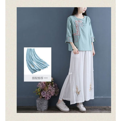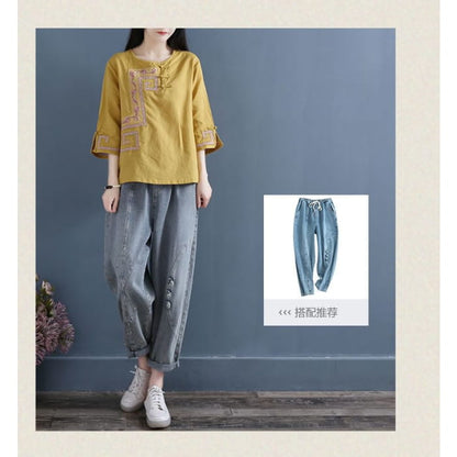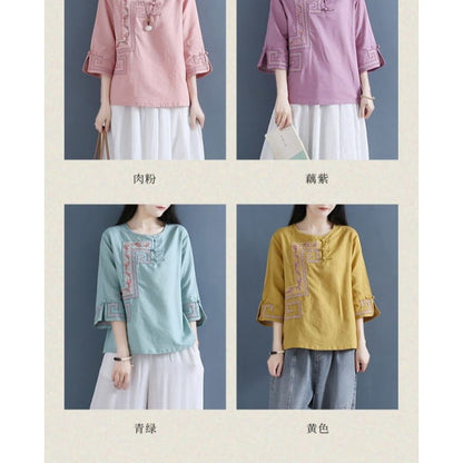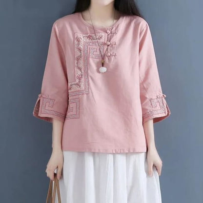 Bluse mit 3/4-Ärmeln und Rundhalsausschnitt und Blumenstickerei