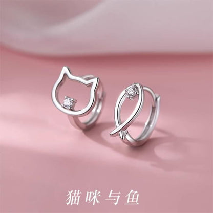 Creolen-Ohrring „Katze und Fisch“ aus 925er Sterlingsilber