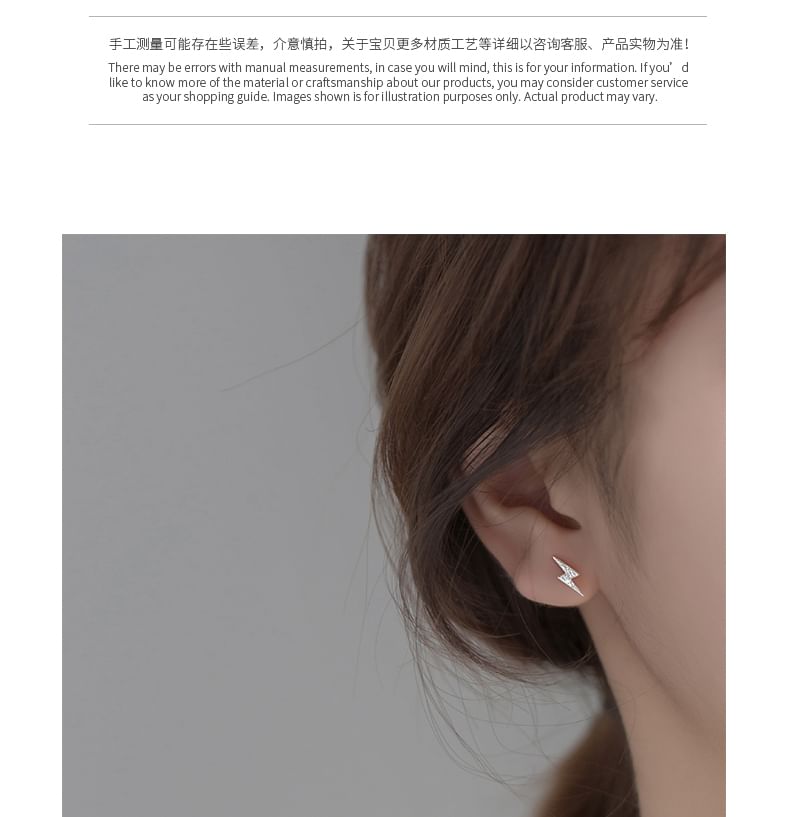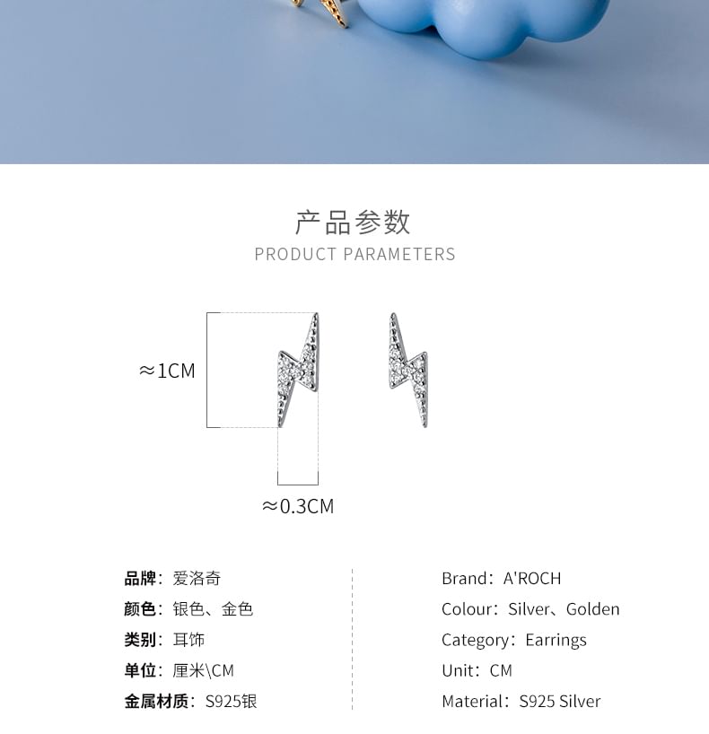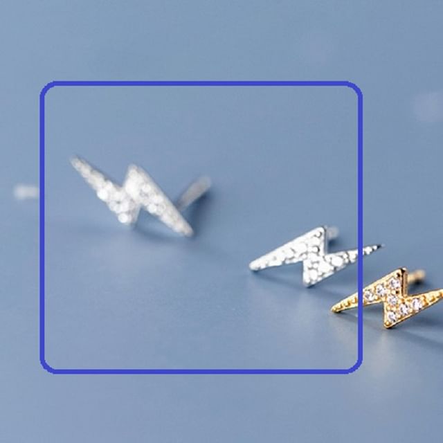 925 Sterling Silver Rhinestone Lightning Stud Earring