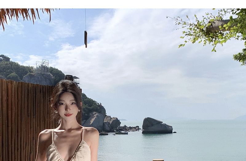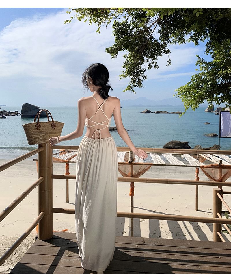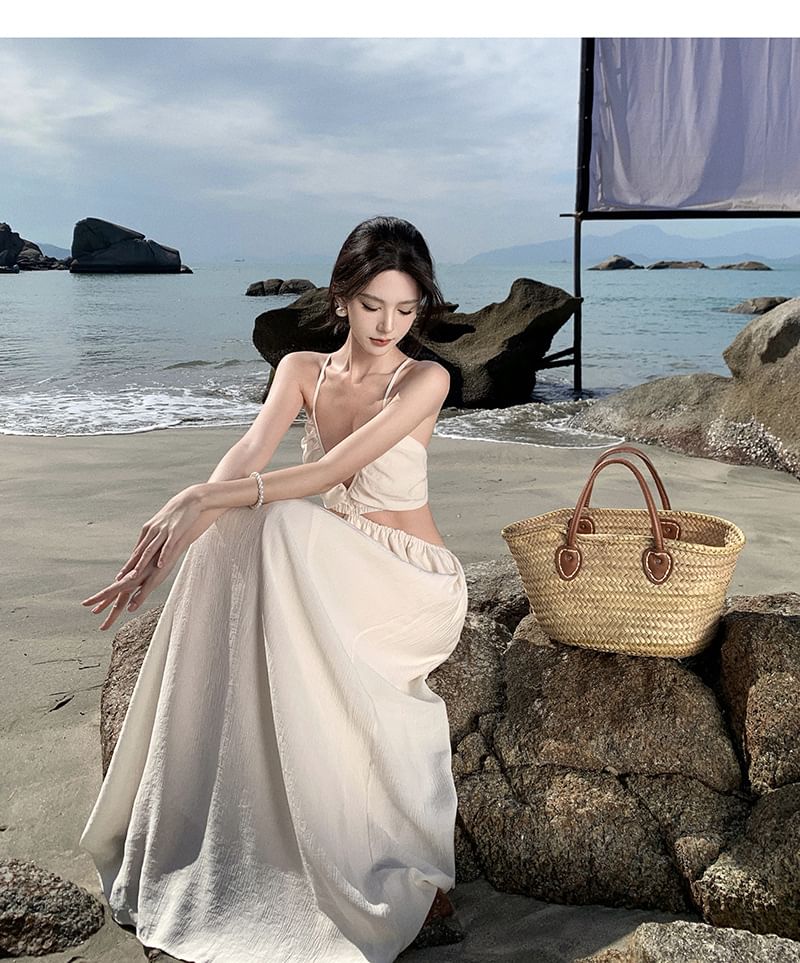 A-Line Maxi V-Neck Plain Cutout Strap Dress Spaghetti