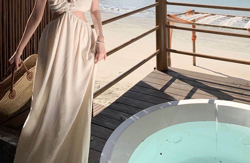 Spaghetti Strap V-Neck Cutout Plain Maxi A-Line Dress