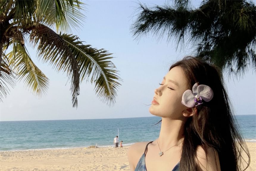 A-Line Tie Strap Maxi V-Neck Dye Print Dress Spaghetti