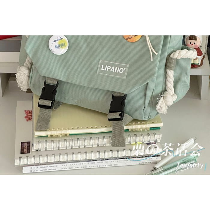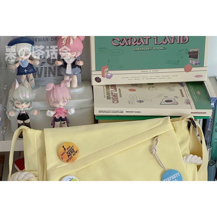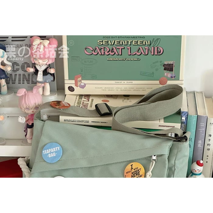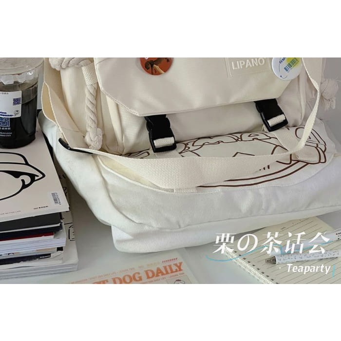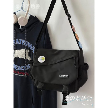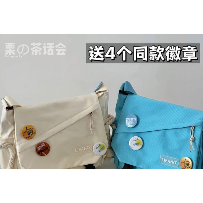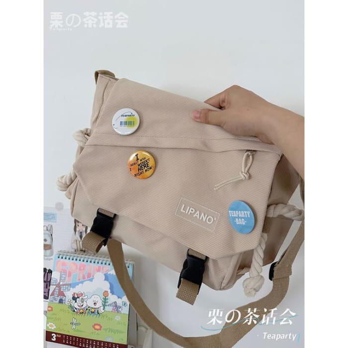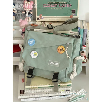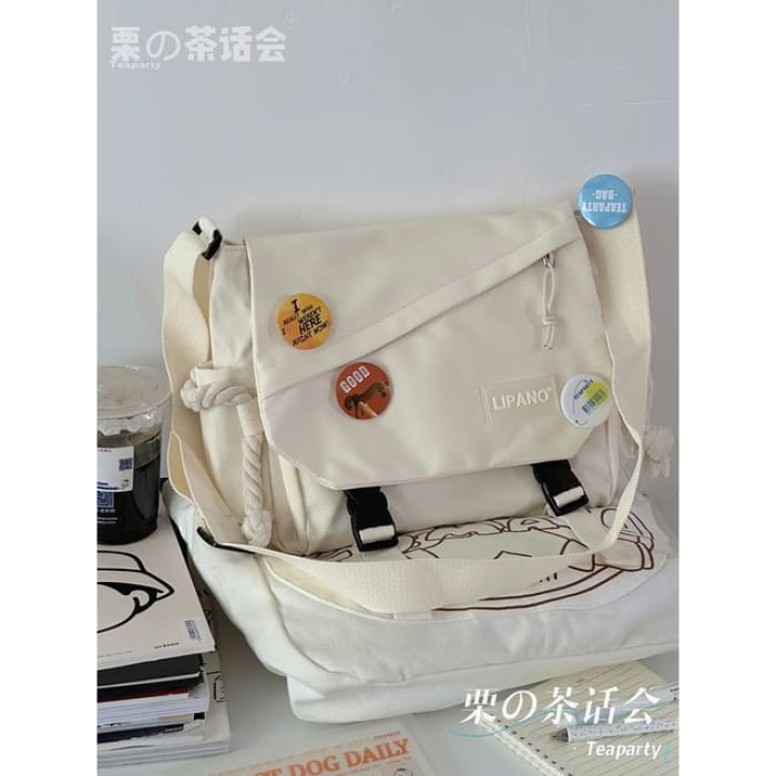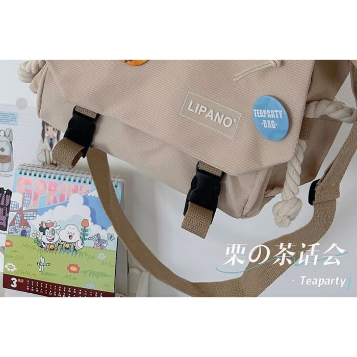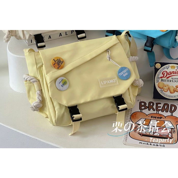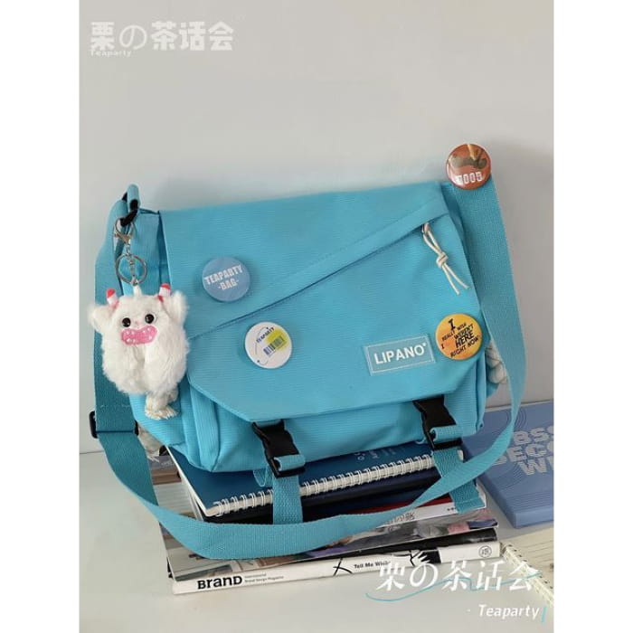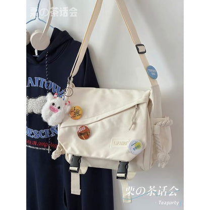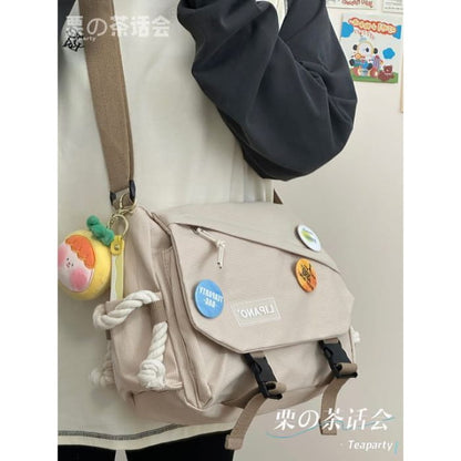 Messenger Bag mit mehreren Taschen und Applikationen / Taschenanhänger / Set